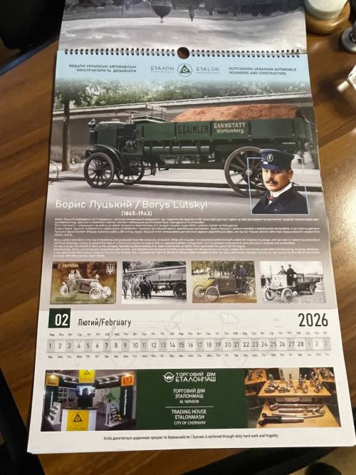 Дуже цікавий календар у «Еталона» вийшов цього року. Він розповідає про вплив українців на світовий автопром, починаючи ще х XIX століття. Так, вже тоді були винаходи, які визначали майбутнє галузі.