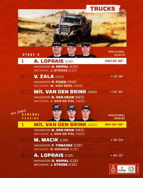 Дуже чудово поїхав Кай Хузінк на Renault C460. На 6-му етапі йому вдалося фінішувати 5-м, випередивши навіть Мартина Маціка. В загальному заліку Кай Хузінк їде поки що на 6-е місце, але за половину Дакару все ще може змінитися.